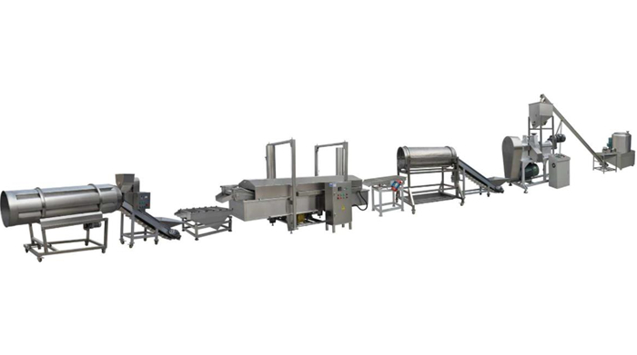 Raw material mixing 》Extrusion 》Separating 》Frying / Baking 》Flavoring 》Cooling 》Packaging